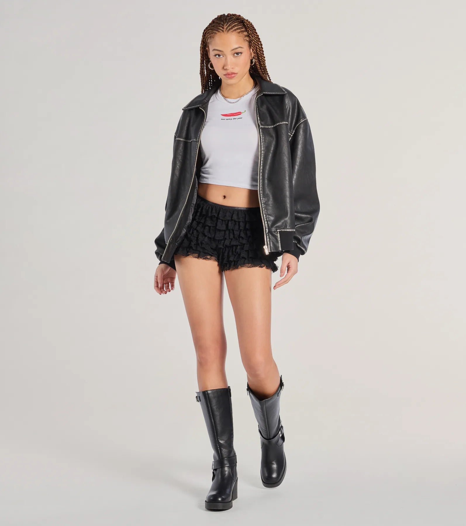 Create your own fairytale this Halloween with hot shorts that feature a chic tiered lace design and a cheeky fit. Perfect for creating a masquerade-inspired costume or classic icons. Complete costume with the matching mask or plaid top.