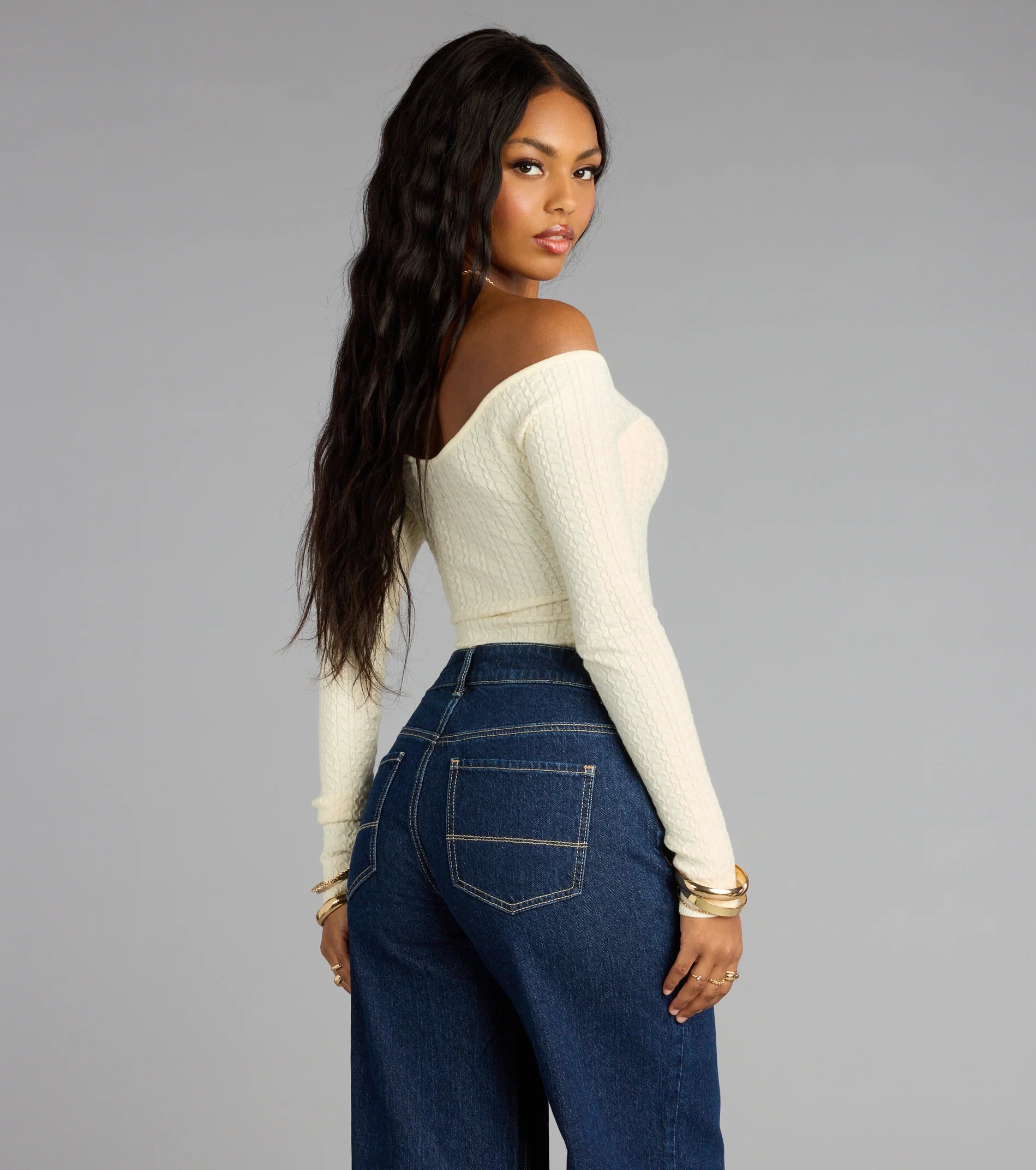 When your outfit needs a little “I didn’t try, but I did.” This off-the-shoulder knit bodysuit brings a soft, form-hugging fit with just the right touch of allure. Pair it with denim for the day or dress it up for the night—either way, it’s your go-to for instant polish.