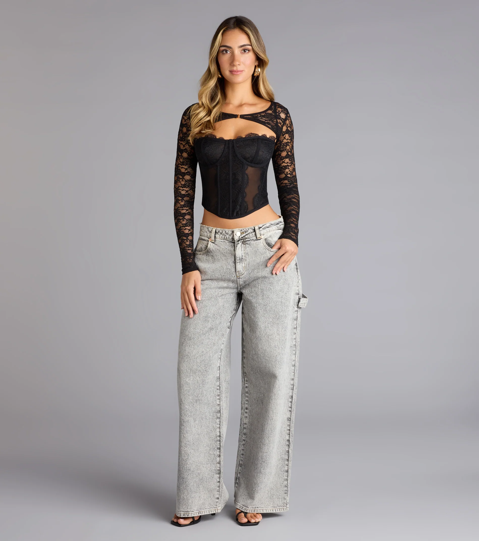 An easy way to add a touch of drama. This long-sleeved lace bolero can be effortlessly layered over corsets, crop tops, or dresses, offering a flirty and sheer coverage with a hint of allure.