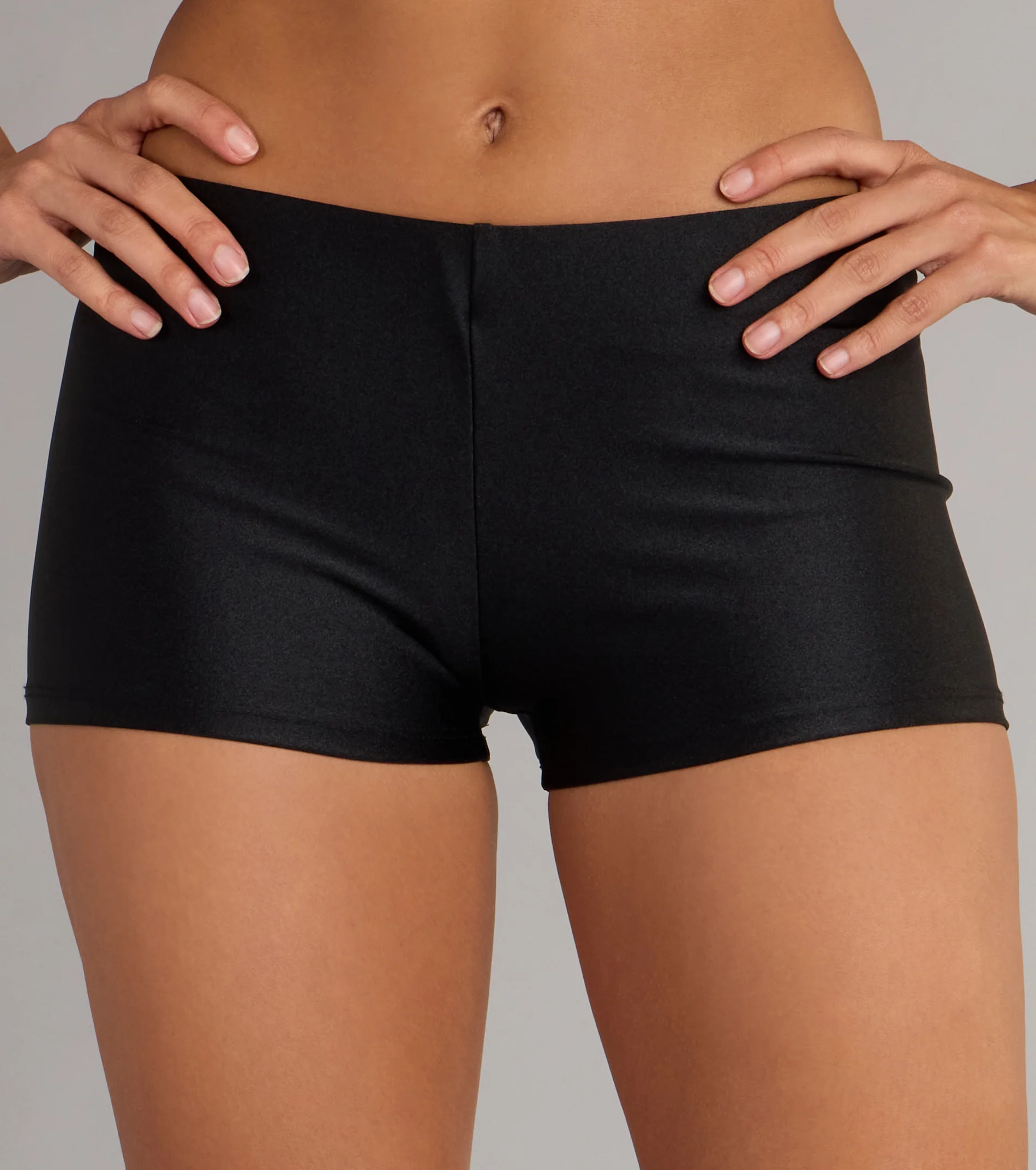 These nylon shorts are a bold choice. They are smooth, stretchy, and fit snugly, making them perfect to pair with any outfit!